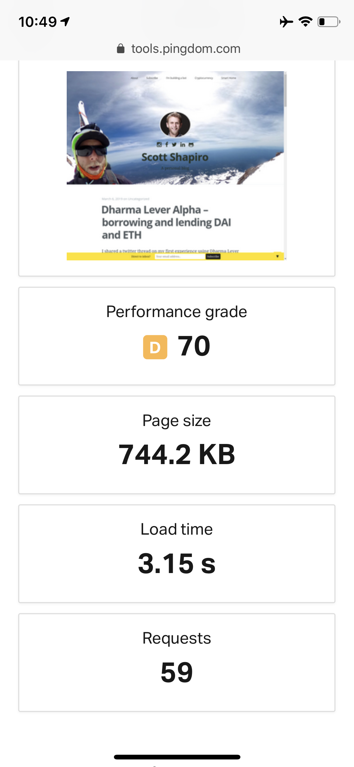 Load time of http://www.scottshapiro.com/ w. Pingdom Tools 3154 ms. Size: 744.2 KB. Requests: 59. https://tools.pingdom.com/#5a7537a129800000