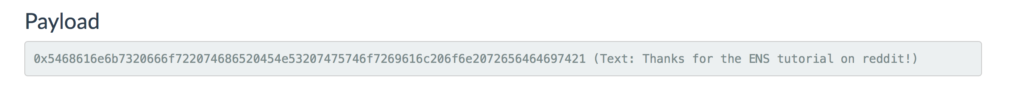 I then sent the author of the tutorial a small donation, and encoded a message in hexadecimal.