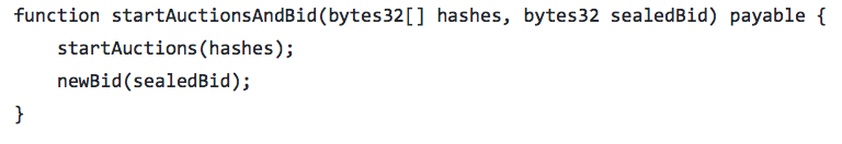 To place a bid for a domain on ENS, I had to initiate a smart contract. Metamask makes this easy. In the background, my browser called the function startAuctionsAndBid(). This does what it sounds like: it places an opening bit and starts the auction, which lasts for a few days. It’s not just one computer that receives this requests, but the whole Ethereum network. In fact, you can see that the code for ENS is public
