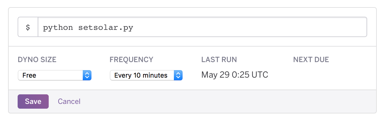 So I was able to pull solar data by manually executing python code in the CLI, but how would I push notify? How could I do this in the “free” dyno tier?