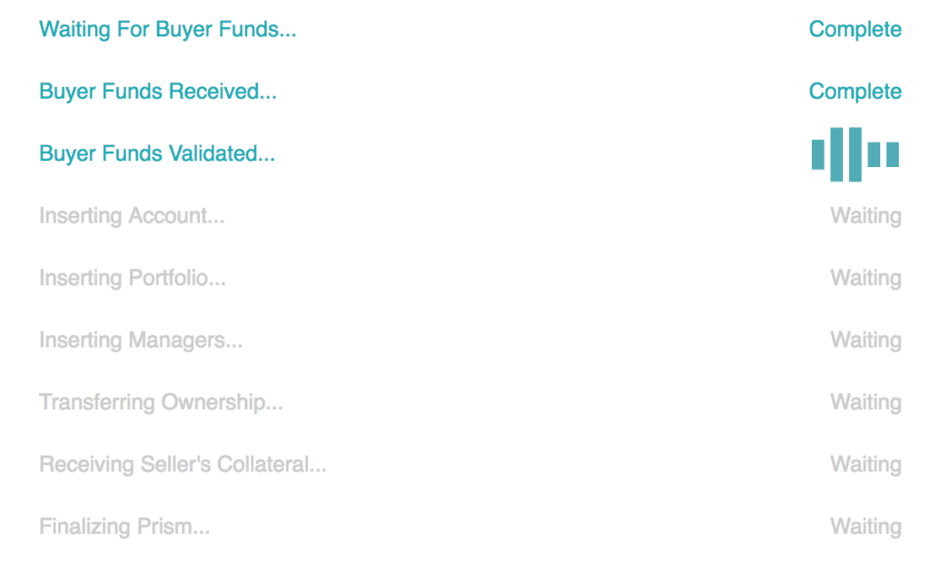 Prism gives you 10 minutes to initiate a transaction. It took me a few minutes to get my ETH transfer going. After a few failed attempts withdrawing from exchanges, I used MEW to fund. Prism quickly acknowledged that transfer and began its process of creating my Prism portfolio.