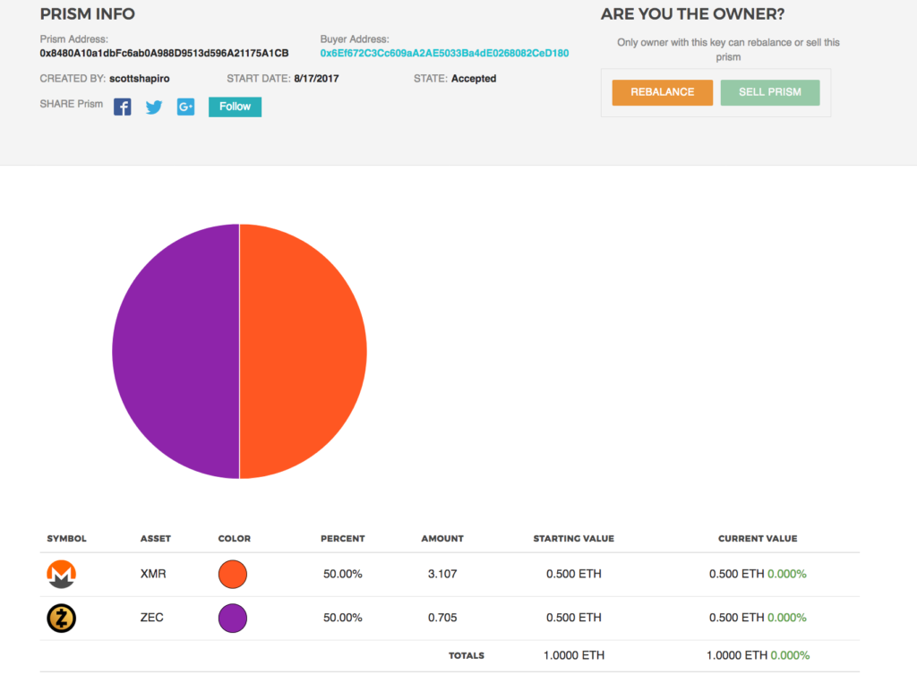 The value proposition of Prism is simple: simple cryptocurrency diversification. Prism lets you create a synthetic portfolio that’s backed by Ethereum without having to buy/sell each coin one at a time.